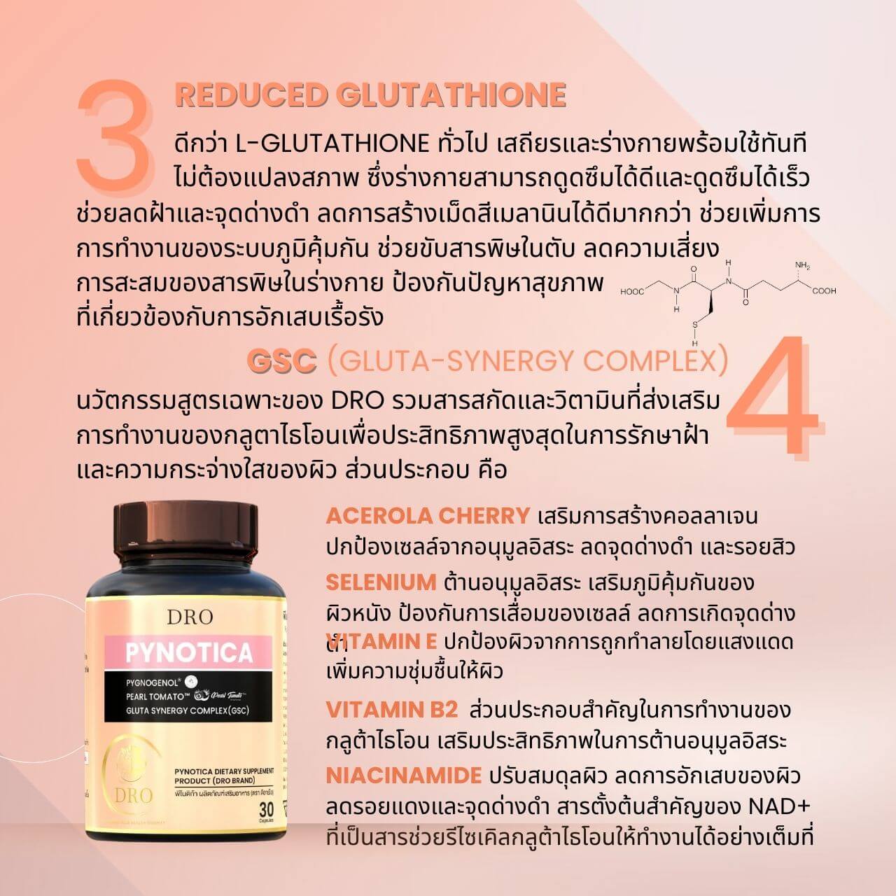 - Glutathione: ช่วยให้ผิวกระจ่างใส ลดความหมองคล้ำ